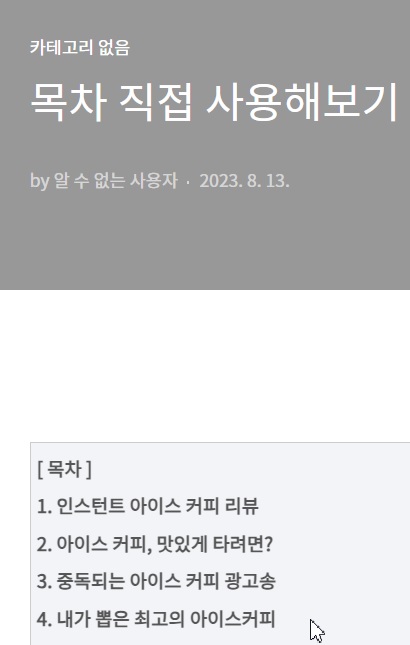 이제 기본 세팅은 모두 완료되었고, 드디어 본격적으로 '목차 만들기' 를 기본 메뉴로 만들어보겠습니다.
