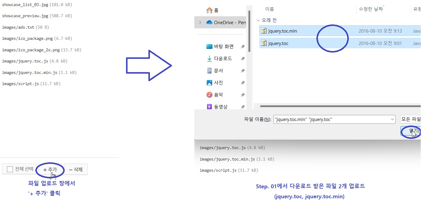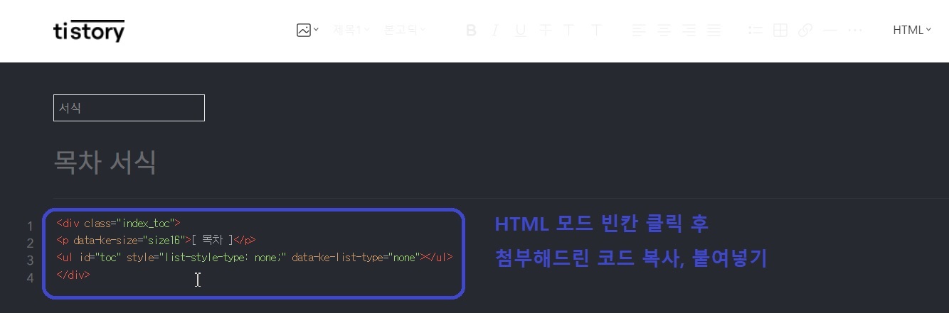 02. 다운로드 받은 목차 세팅 파일을 티스토리 블로그에 업로드